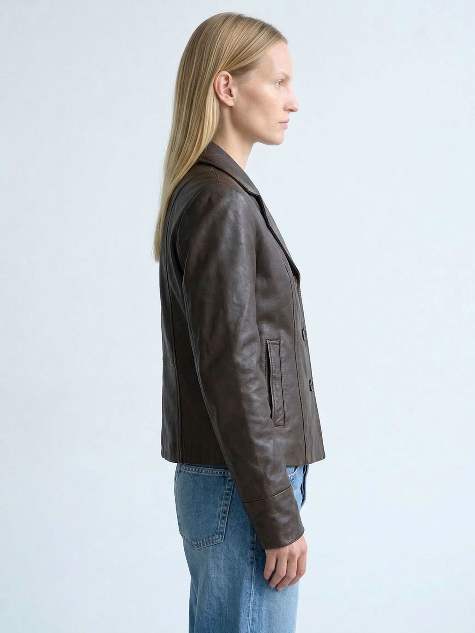 Turn heads with every step in a jacket that demands attention. Drew Jacket is crafted in fully lined, 100% soft leather making it the perfect style for transitional seasons. It features a single-breasted button closure, lapel collar, two welt pockets and beautiful, all-around stitching. Drew Jacket is a tailored jacket that fits true to size for a sleek, polished look. For an oversized look we recommend sizing up.