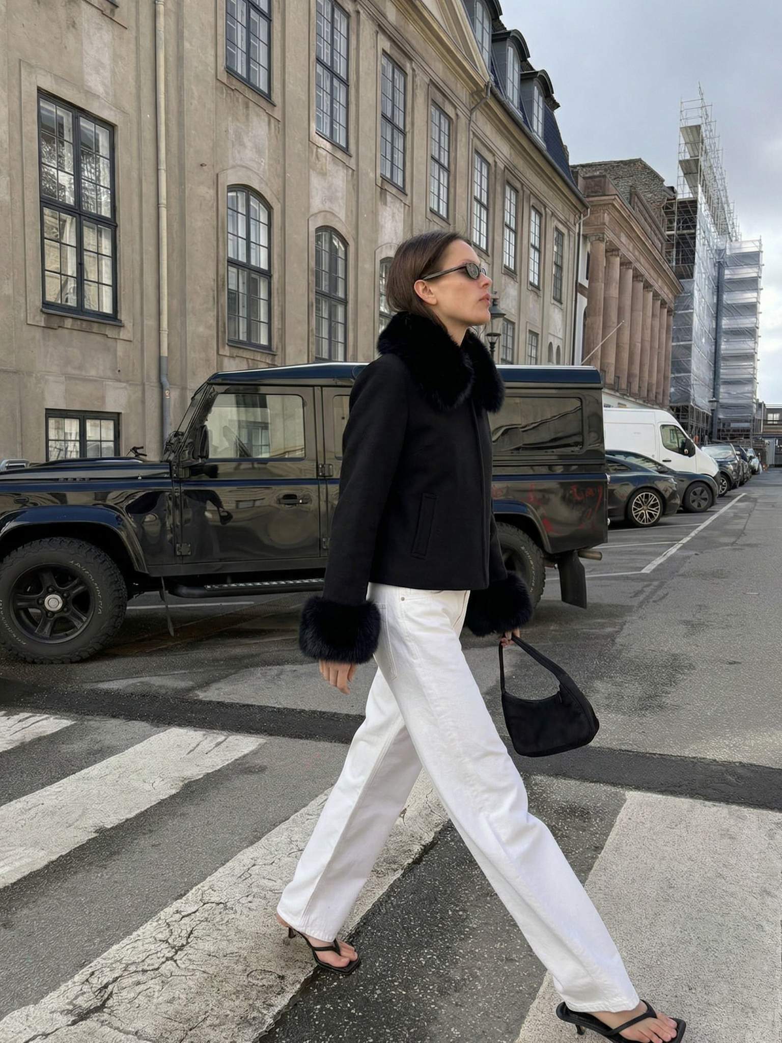 ✖The Daisy Jacket is crafted from a soft wool blend, finished with a faux fur collar and matching cuffs. Featuring a slightly tailored silhouette, it includes a concealed front button closure for a seamless look. Plush faux fur detailing highlights the neckline and sleeves for a chic, refined finish. An elevated outerwear piece with timeless femininity.