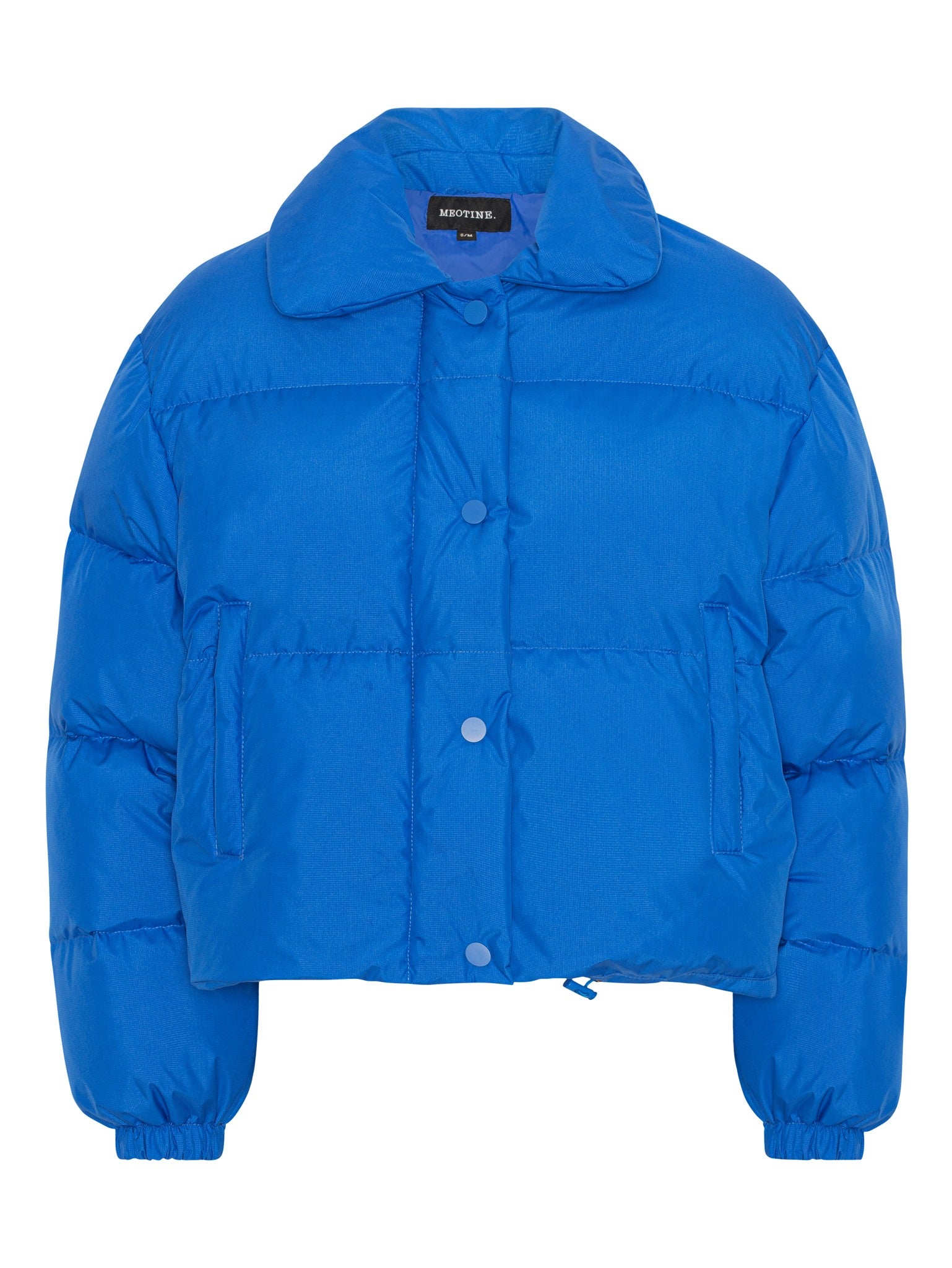 • MEOTINE blå pufferjakke med oversized pasform, perfekt til stilfulde og varme outfits.