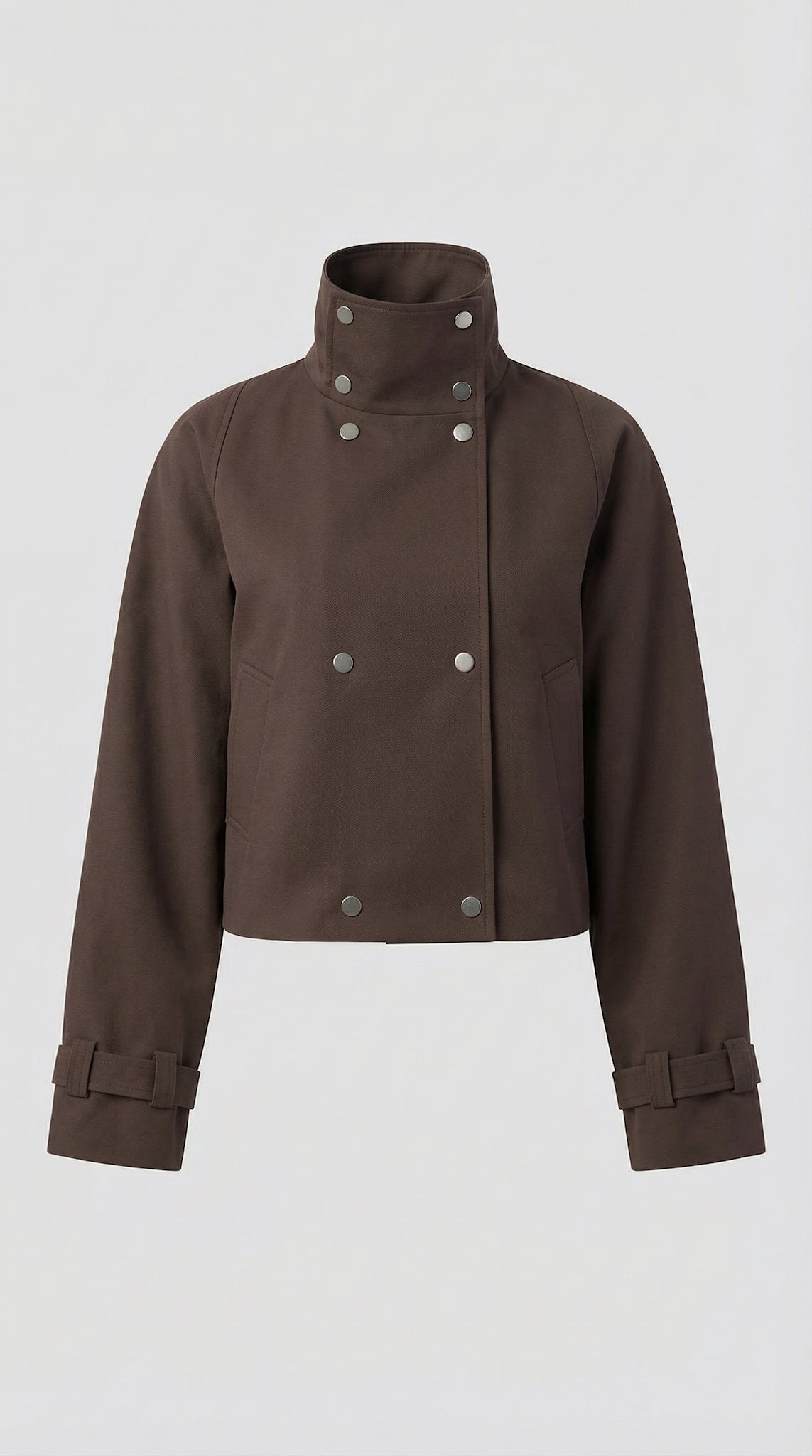 A Modern take on the classic trenchjacket is crafted for a clean, contemporary look with a high collar and button-down front. It features two practical pockets and a waist-defining belt, allowing you to cinch for a tailored silhouette or wear loose for effortless fit.
